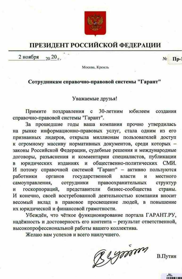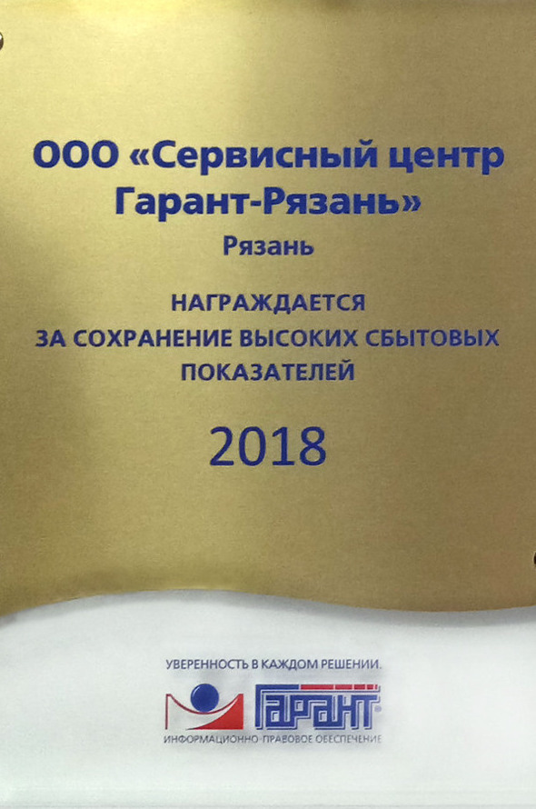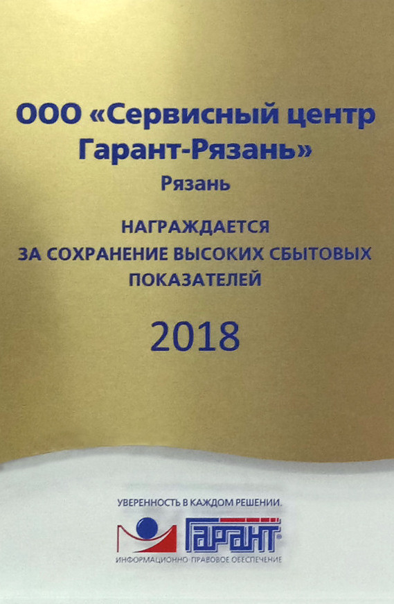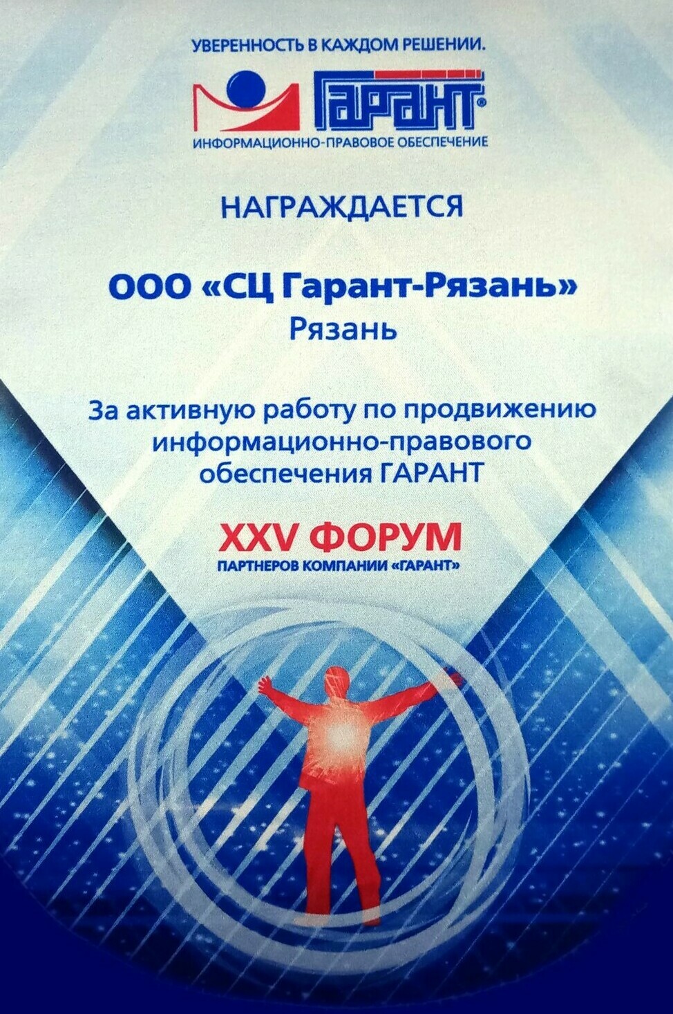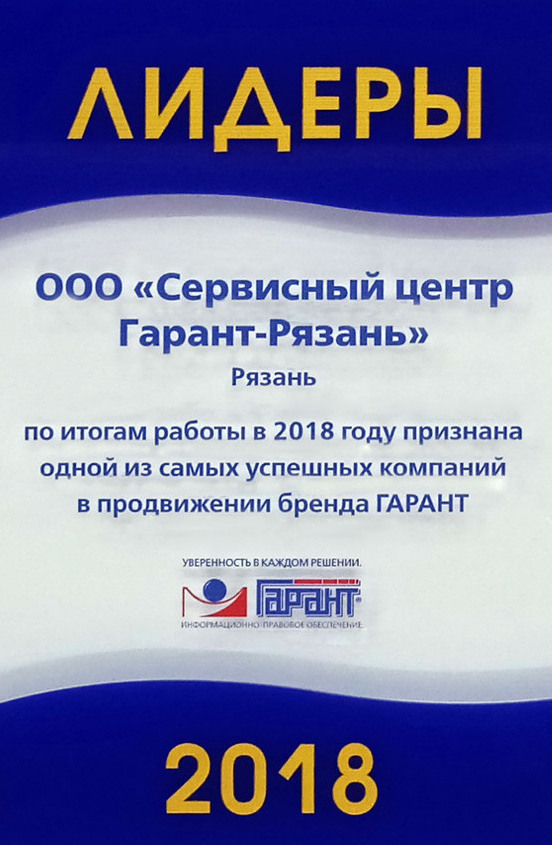 Деятельность компании "Гарант" высоко оценивается пользователями и экспертами - "Гарант" является обладателем патентов и сертификатов, лауреатом премий. С 30-летним юбилеем компанию поздравили Президент РФ, Председатель Правительства РФ, министры, представители общественности и бизнеса, ведущие ученые.